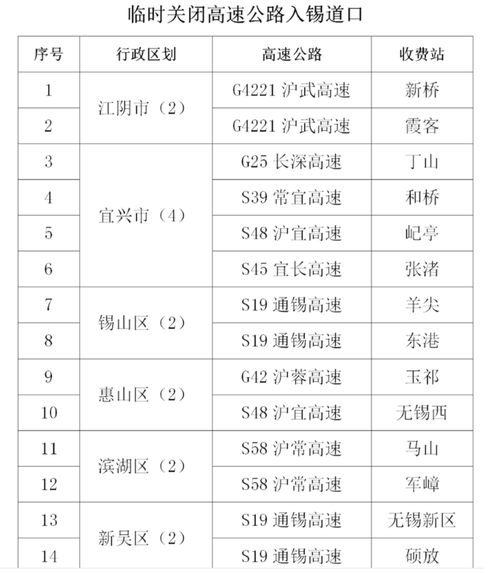 關(guān)于臨時關(guān)閉南通市境內(nèi)部分高速出入口的通告