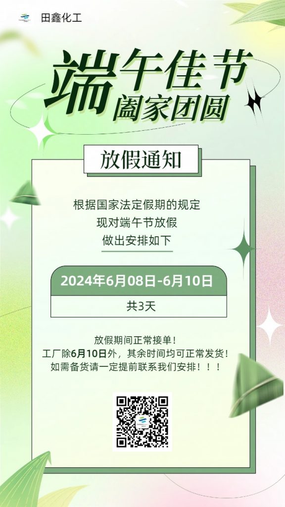 2024年端午節(jié)即將來(lái)臨,根據(jù)國(guó)家法定節(jié)假日安排及我司實(shí)際情況,具體放假時(shí)間安排如下:2024年6月8日(星期六)---2024年6月10日(星期一),共3天。